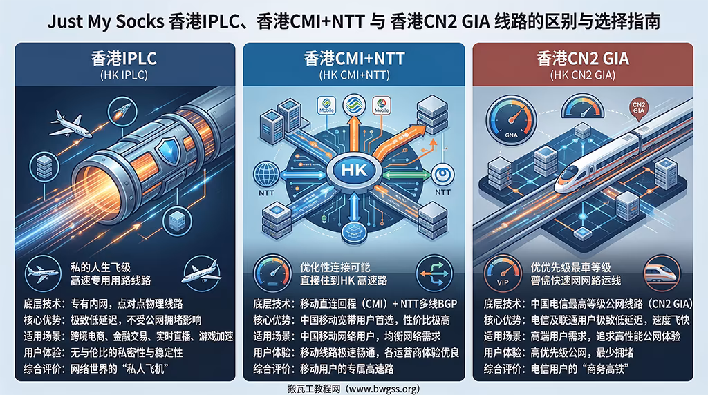 Just My Socks 三大香港高端线路 IPLC、CMI+NTT、CN2 GIA 的技术架构与适用人群